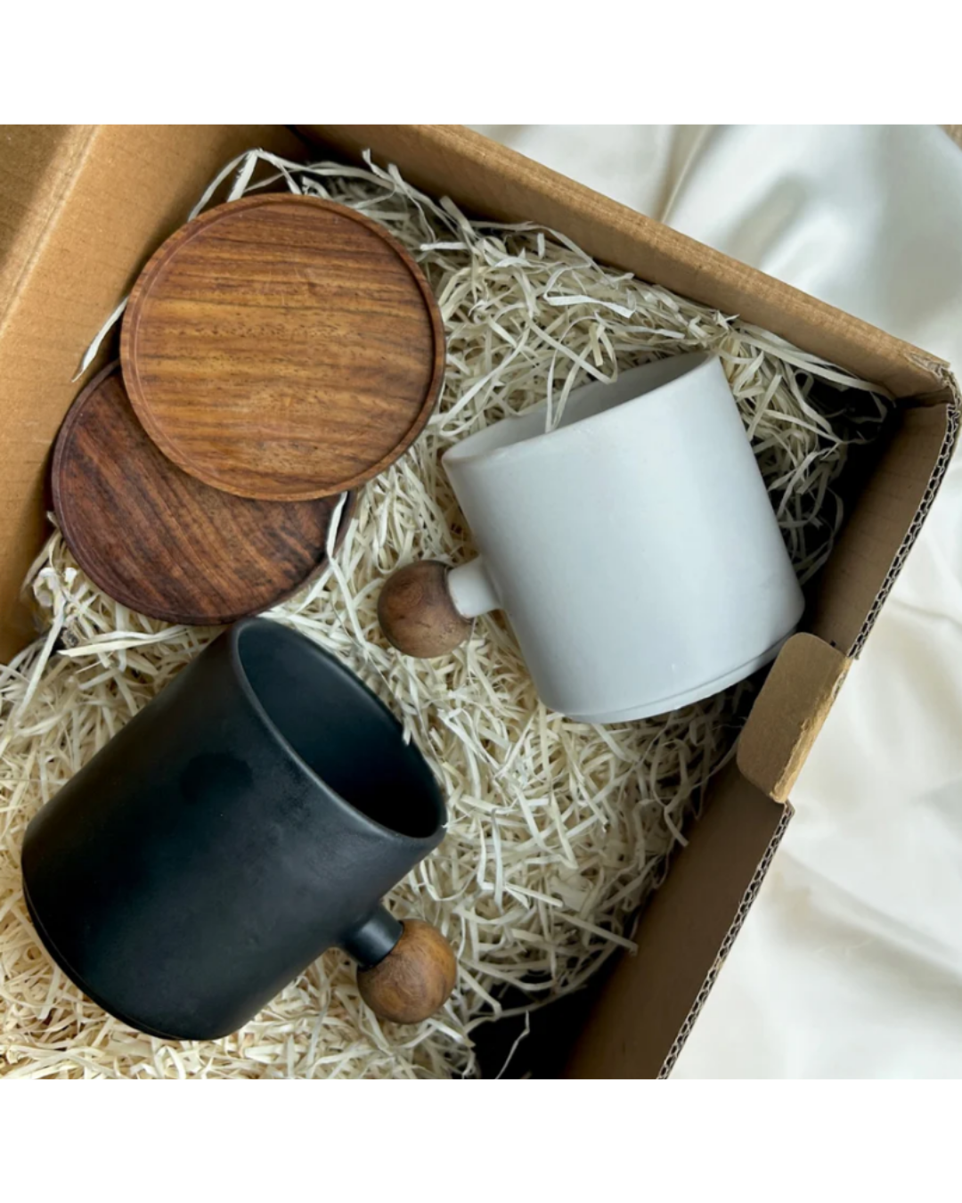 Perfect for housewarmings, engagements, or elevating your own daily rituals, this duo brings a touch of sophistication to any home. The wooden coasters serve as versatile companions: use them to rest your mug, cover your drink, or hold a few favorite snacks.